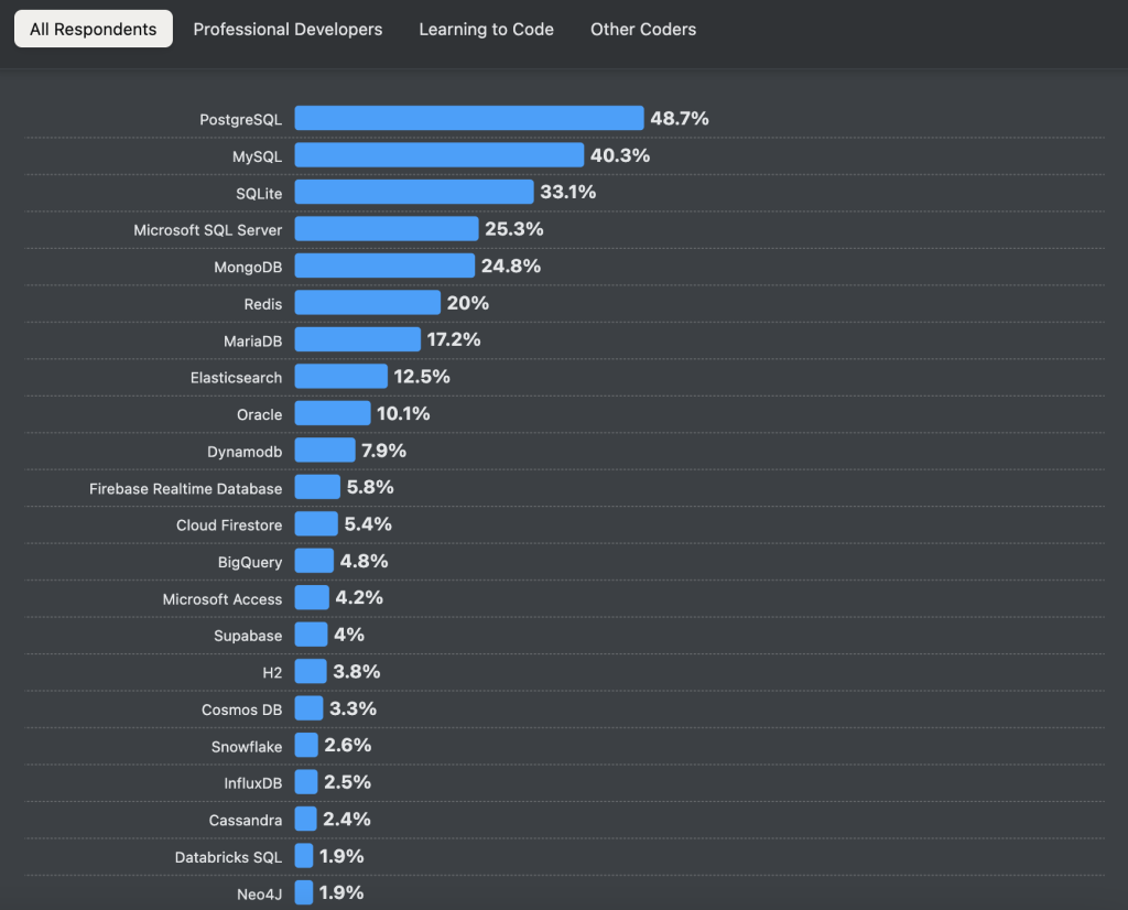 【2024年Stack Overflow調査】Postgresが2年連続で開発者お気に入りデータベースNo.1