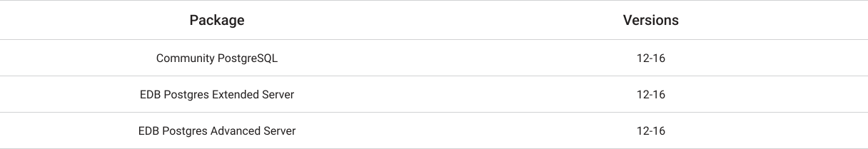 EDB PGD is compatible with PostgreSQL, EDB Postgres Extended Server, and EDB Postgres Advanced Server and is deployed as a standard Postgres extension named BDR. Supported version combinations are listed here: