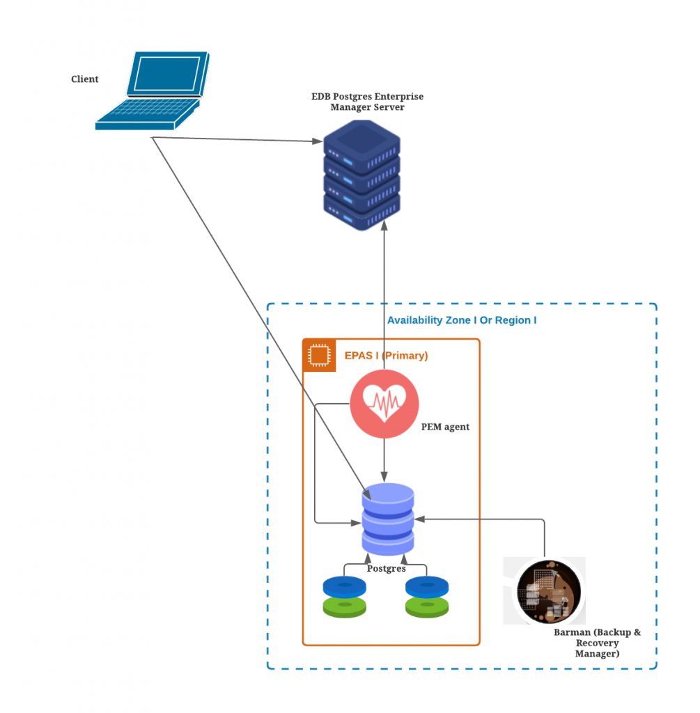 1. EDB-RA-1 (EDB Reference Architecture one): Single node Postgres with monitoring and backup solution.