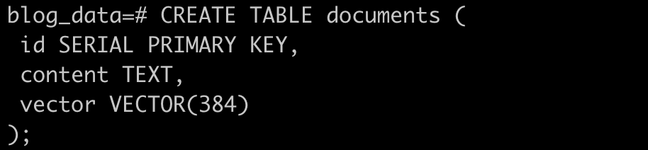 Create pgvector as an extension for your database, and then create a table with vector as the data type.