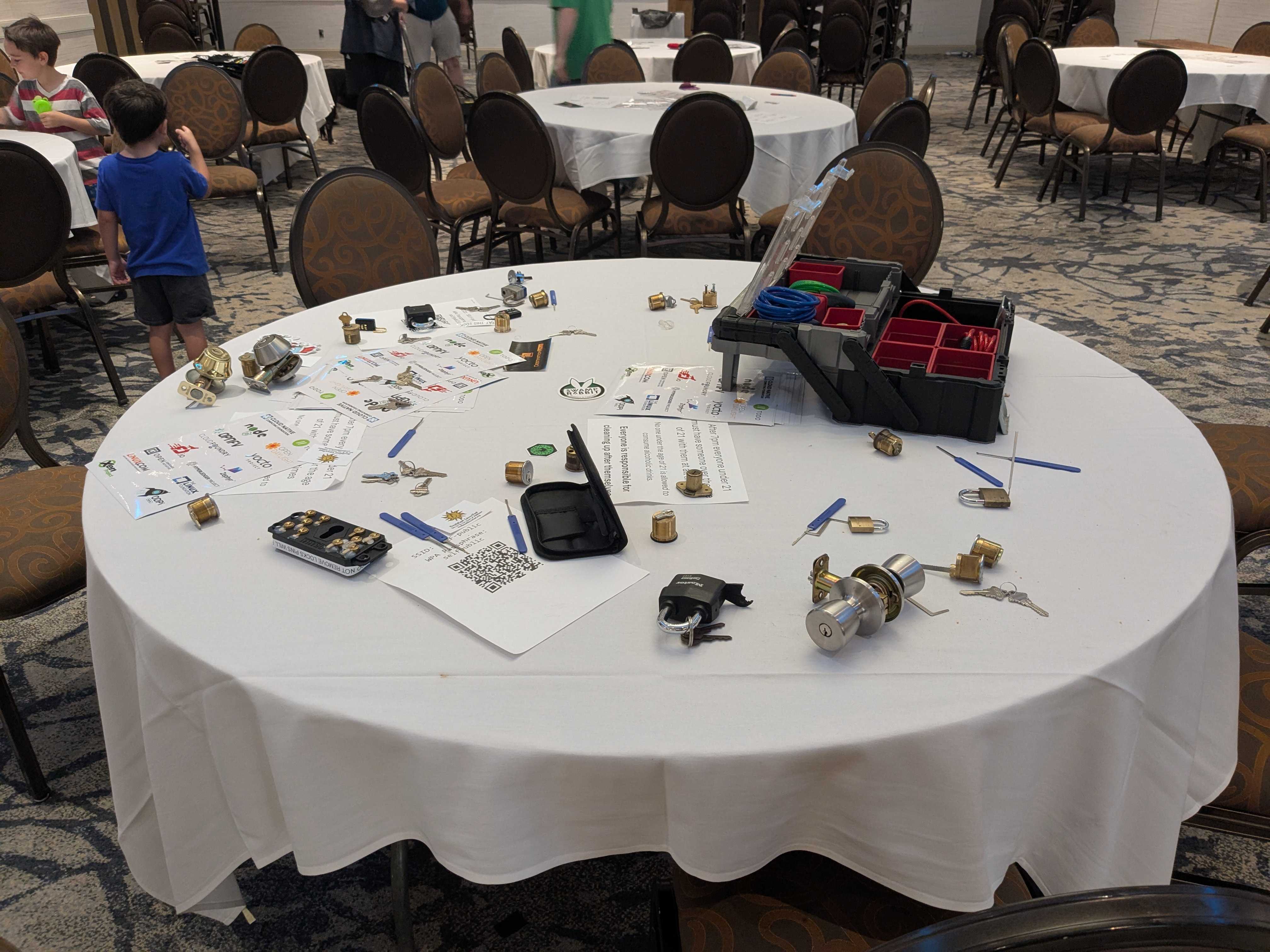 Attendees put theory into practice at SELF’s annual lock-picking table and ham radio license sessions, plus the ever-popular “geeks and guns” firing range and barbecue dinner.