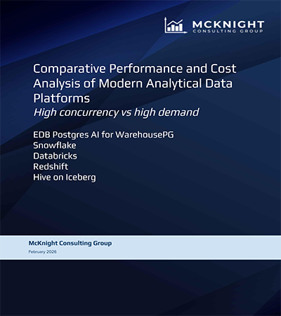 What do analytics teams really need for their BI workloads? Consistent performance, controlled costs, and no limits on who can access data when. This report from McKnight Consulting Group proves how EDB Postgres AI for WarehousePG delivers on all fronts.